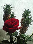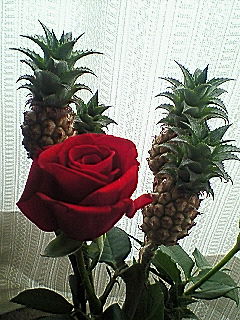 花屋さんでパイナポーを見かけました。私こんなの売ってるの初めて見たんですけど、普通にあるものなんですか?何だか訴えかけてくるものがあったので買ってしまいました。写真載せておきます。パイナポーwith薔薇。